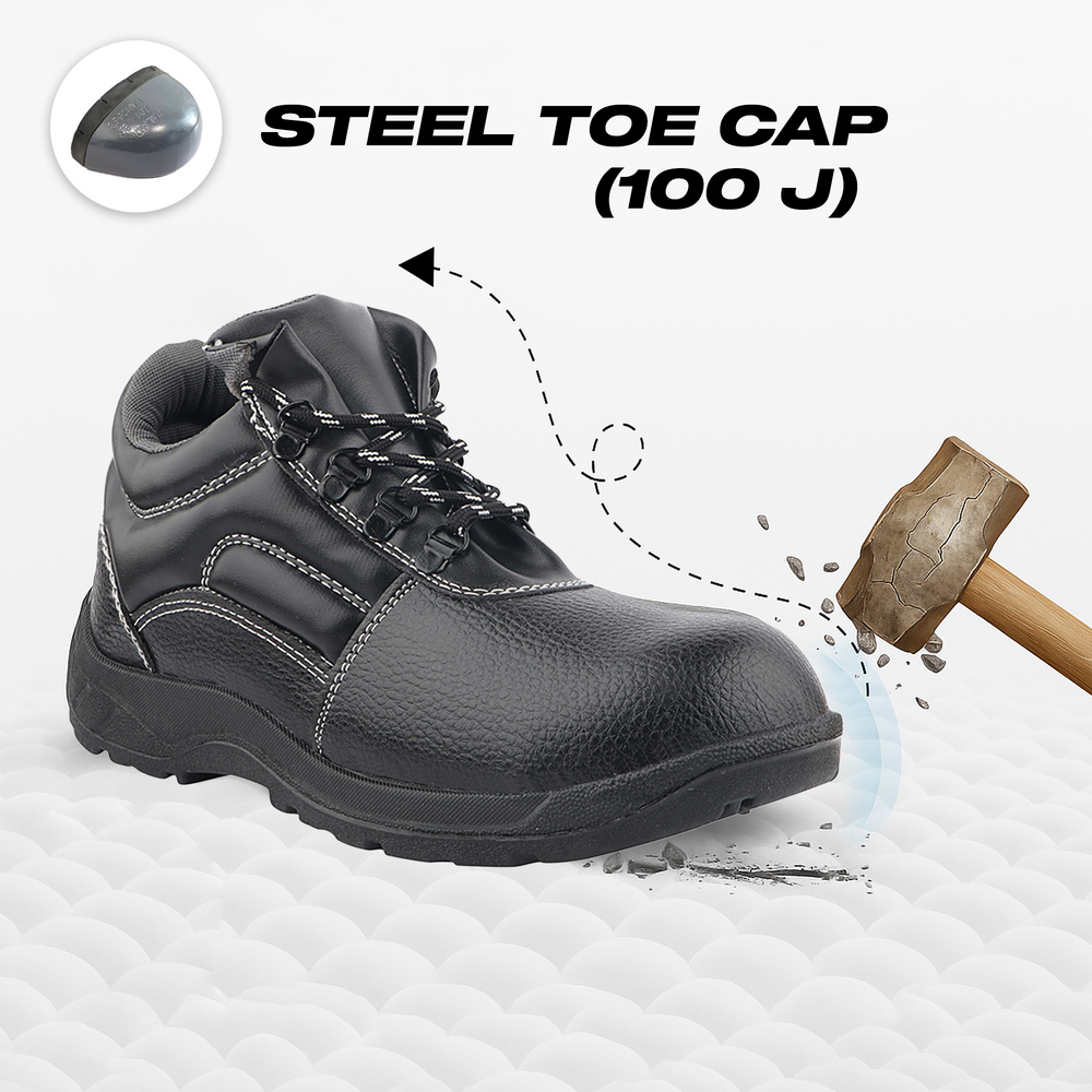 Steel Toe Cap: Can withstand impacts of up to 100 joules, offering protection against falling objects and workplace hazards.