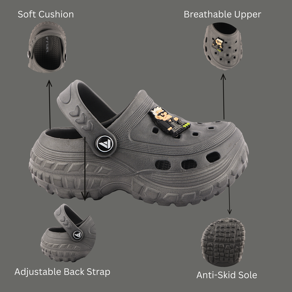 FUEL Poddle Cute & Lightweight EVA Slip-On Clogs for Kids (GREY)