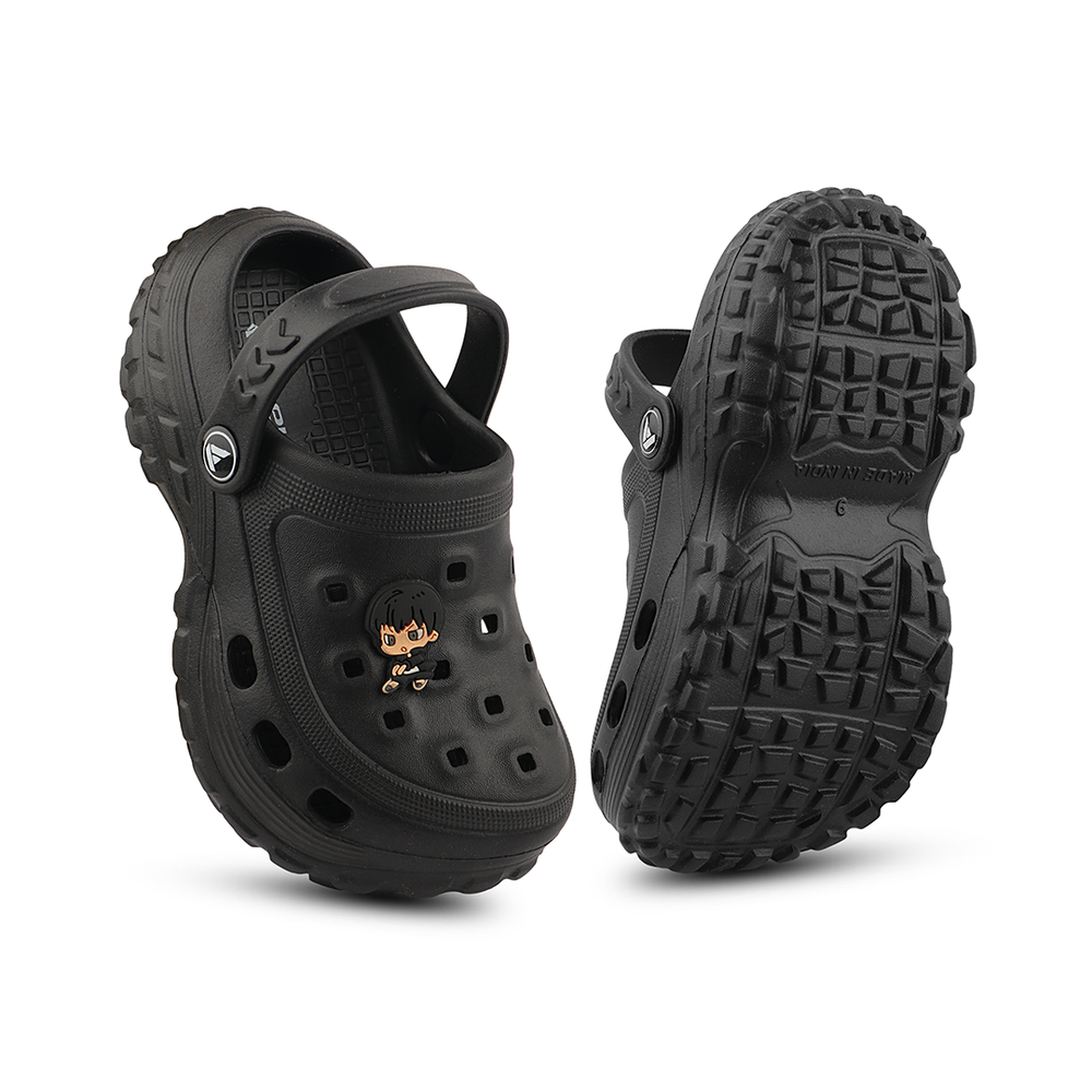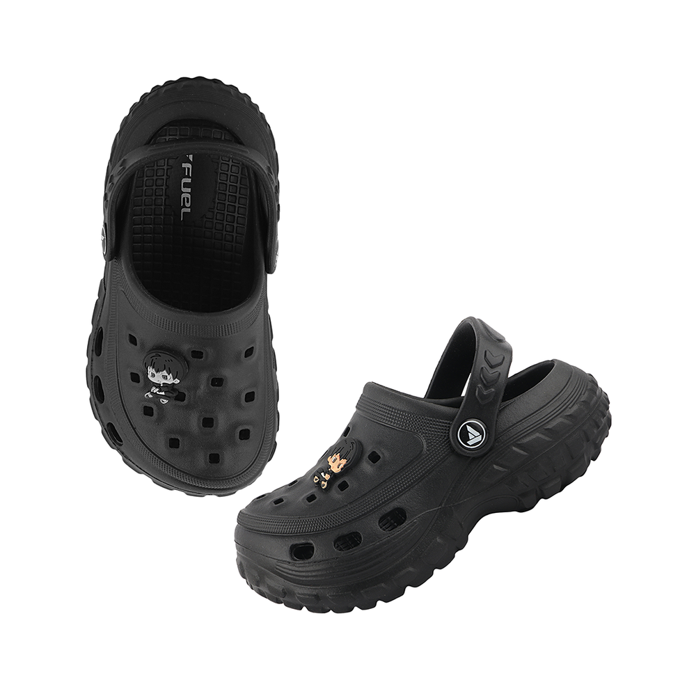 FUEL Poddle Cute & Lightweight EVA Slip-On Clogs for Kids (Black)