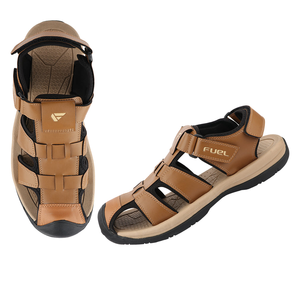 FUEL Commando-1 Comfortable Outdoor & Daily Wear Men’s Flexible Fisherman Sandals with Protective Toe Cap (Tan)