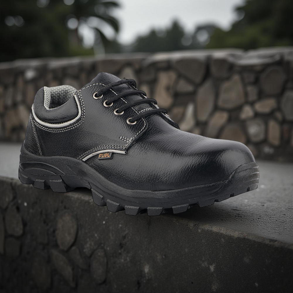 FUEL Leon R Leather in Tango PRINT & Rubberized Single Density Sole Industrial Safety Shoes for Men's (Black)