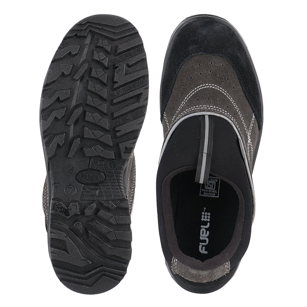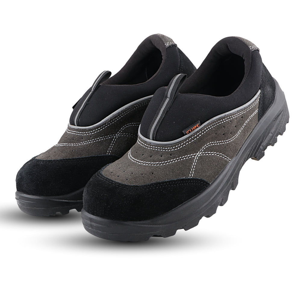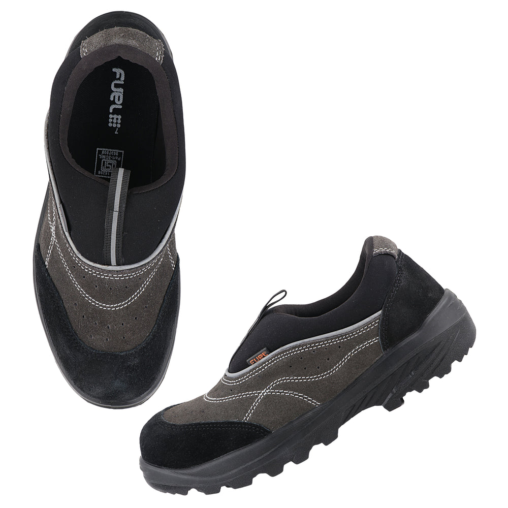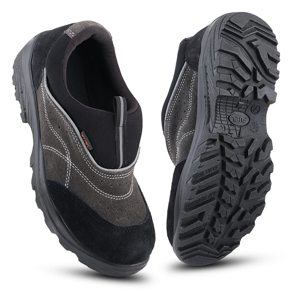 FUEL Slip-on Industrial PU Single Density Sole Safety Shoes for Men with 200J Steel Toe (Black)
