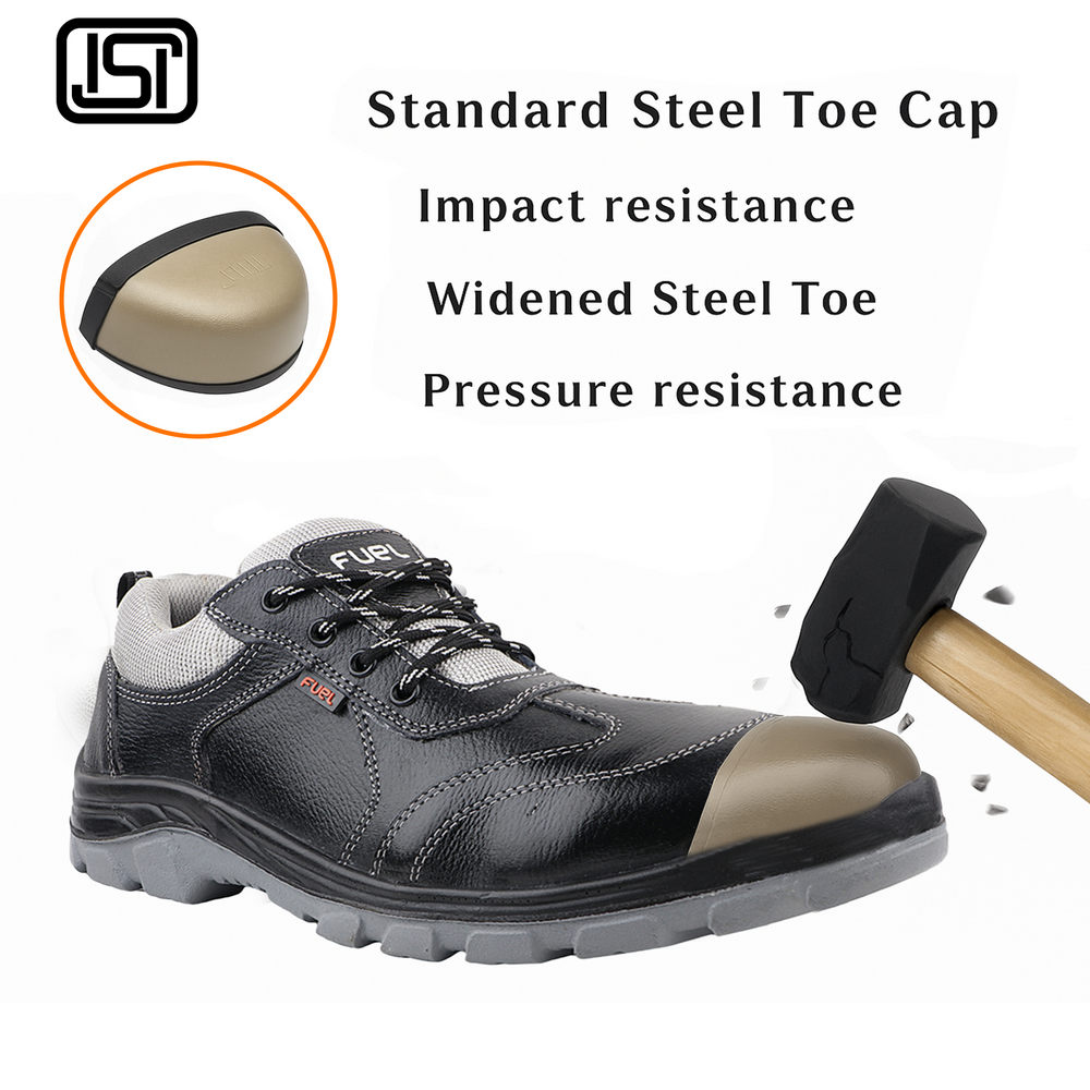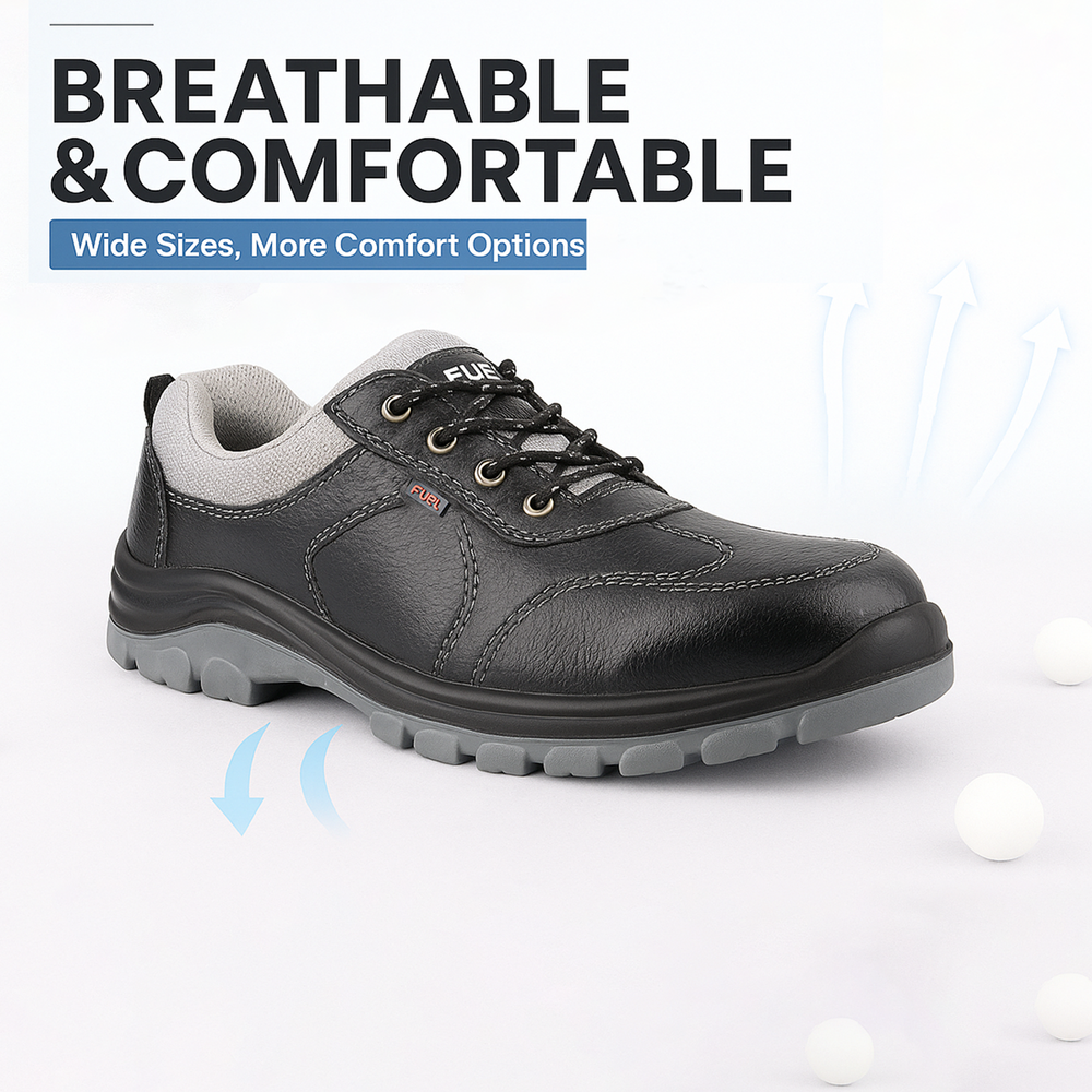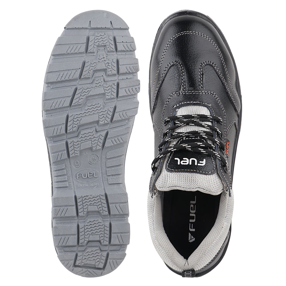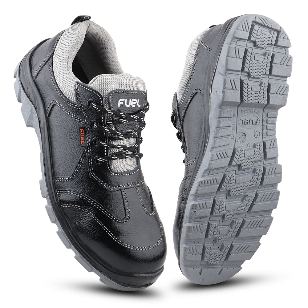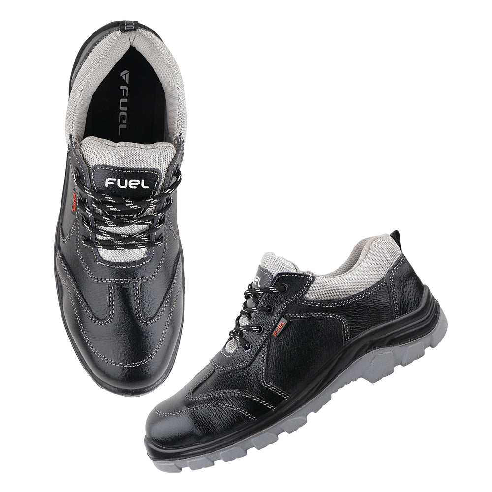 FUEL Stroid-DD  PU Single Density Industrial Sole Safety Shoes for Men with 200J Steel Toe (Black)