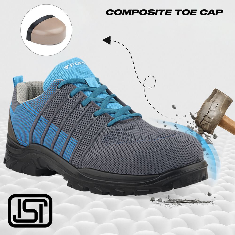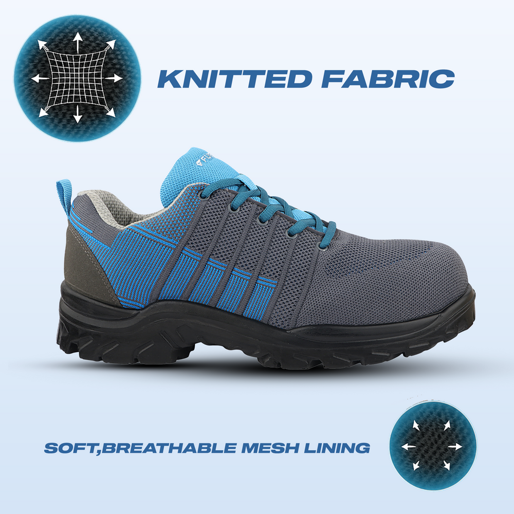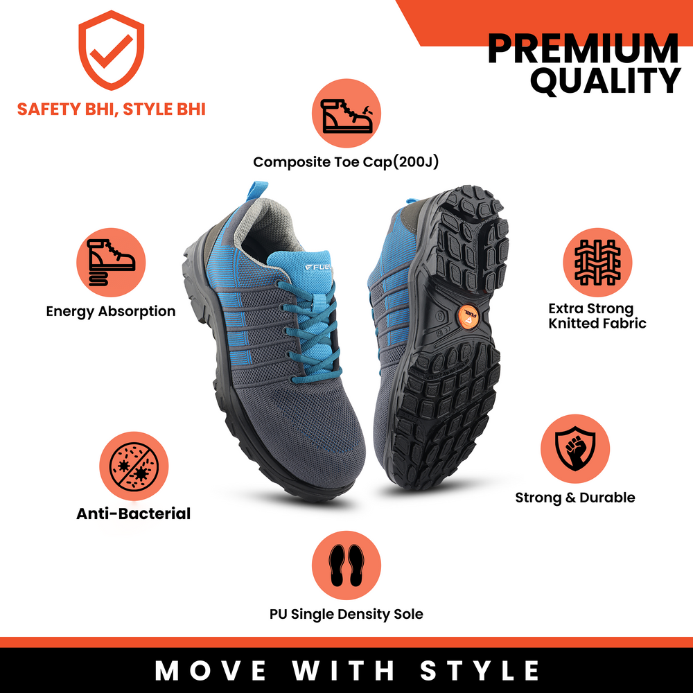 Sports Look: These sporty safety shoes offer impact protection, slip resistance, and durability against abrasions, chemicals, and oil, all while providing comfort for long hours. Stylish and functional, they combine safety with a modern look.