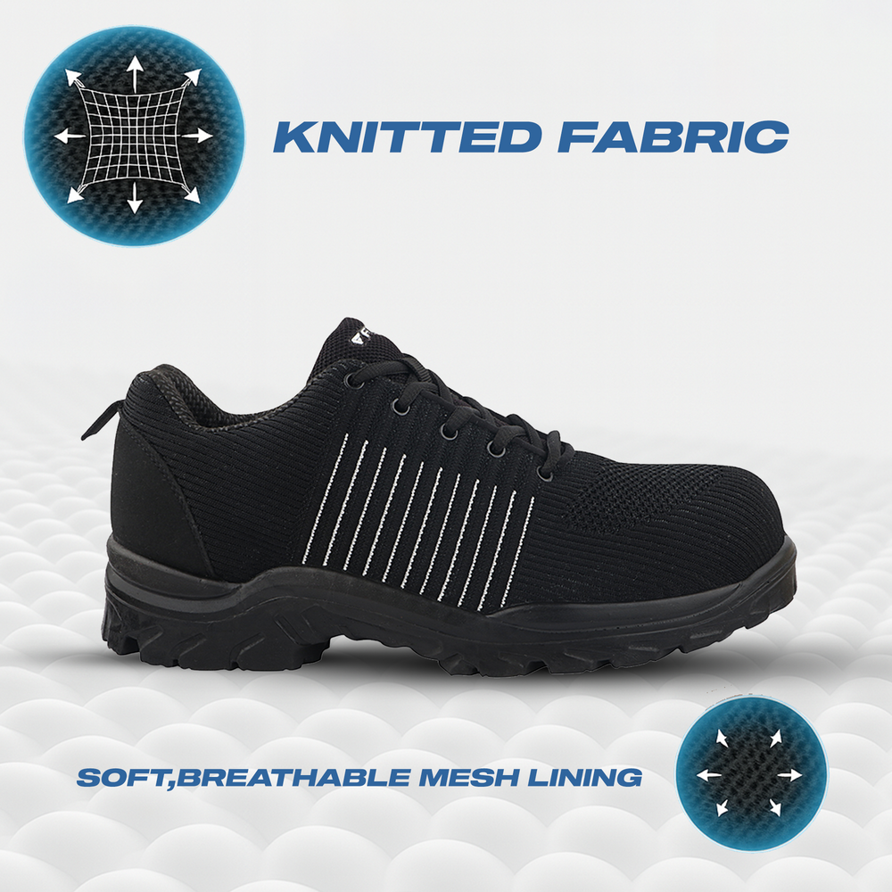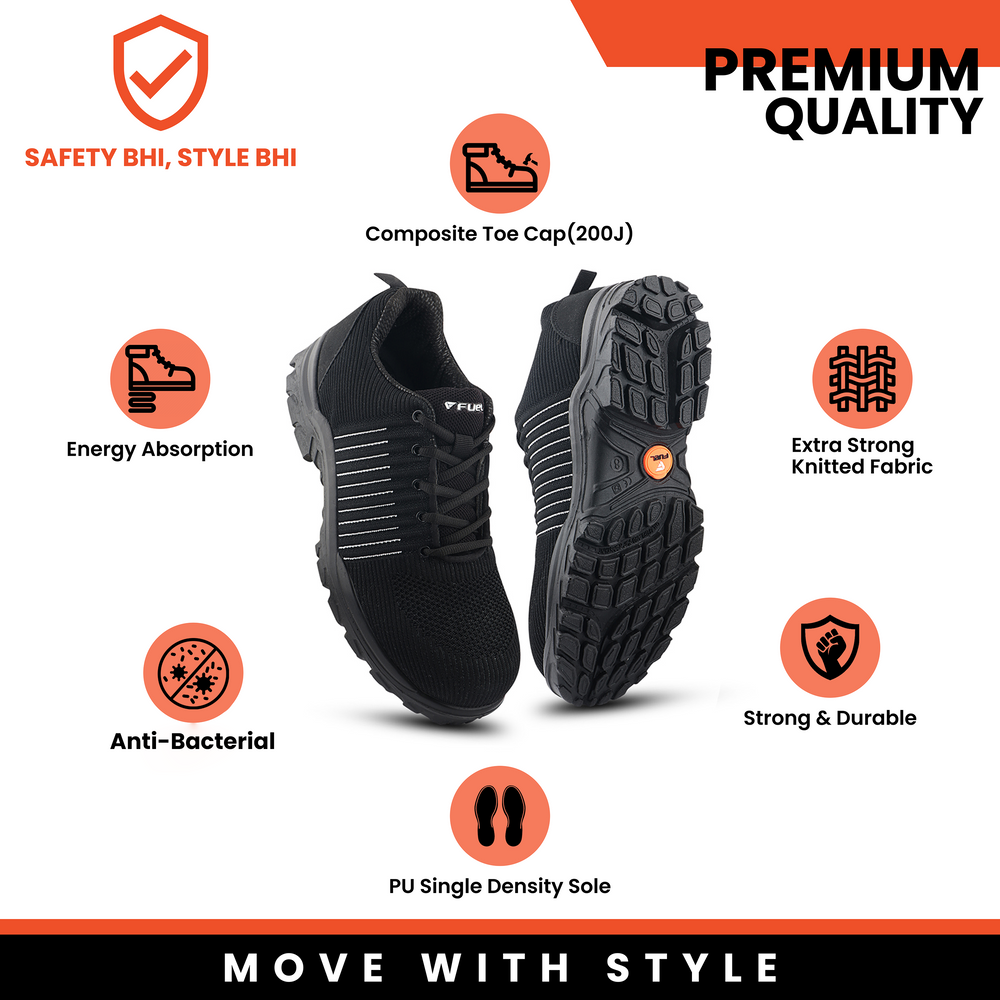 Sports Look: These sporty safety shoes offer impact protection, slip resistance, and durability against abrasions, chemicals, and oil, all while providing comfort for long hours. Stylish and functional, they combine safety with a modern look.
